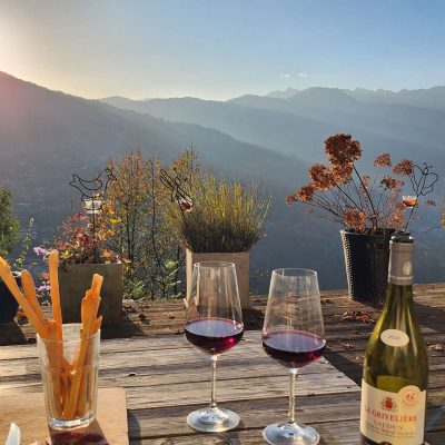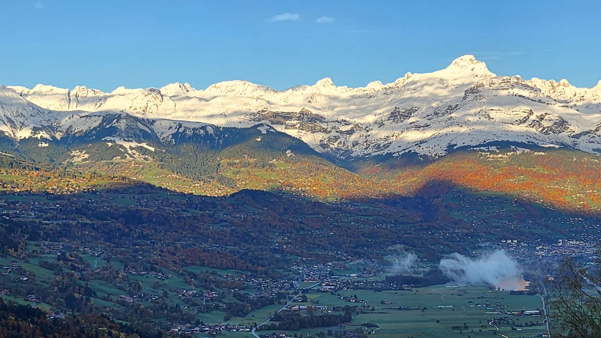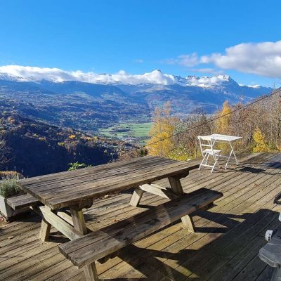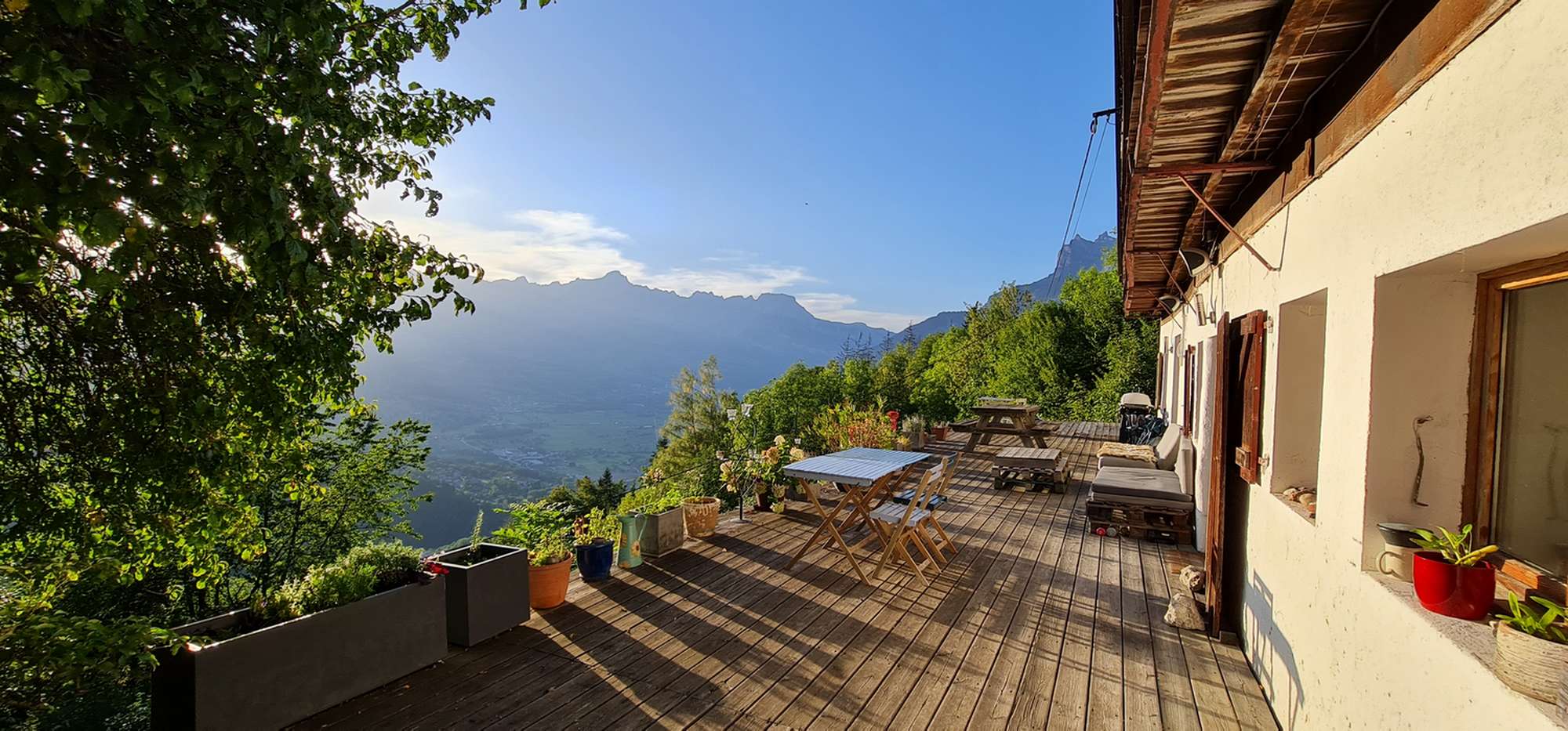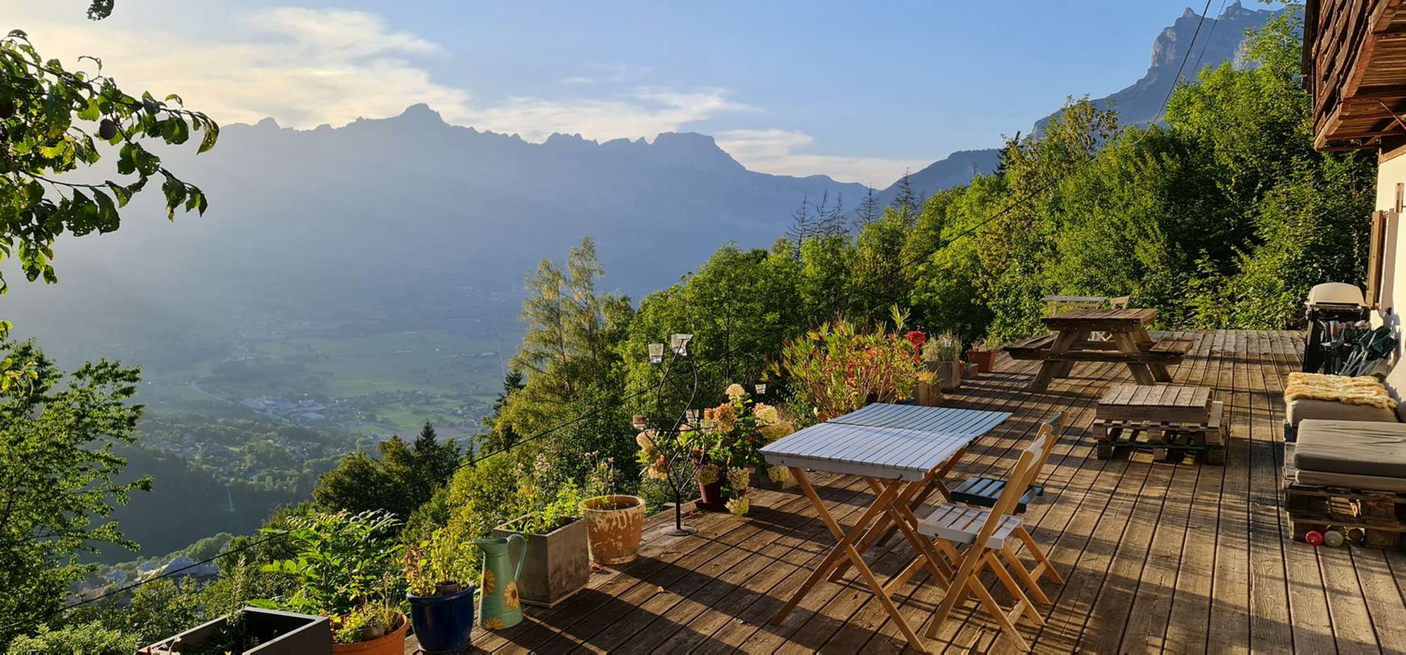 A large deck, 1ha of private land adjoining the forest on the slopes of Mont Blanc.